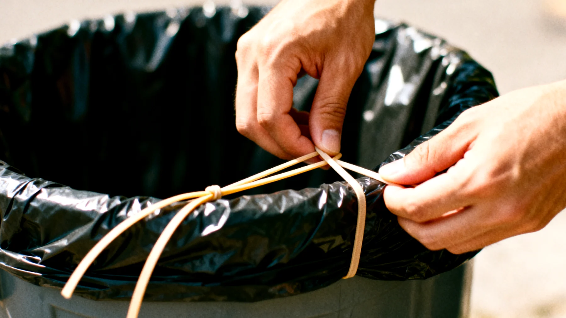 Diese minimale Anpassung hat mehrere funktionale Vorteile: Der Beutelwechsel geschieht in einem Handgriff, ohne Schubladen oder Vorratsschränke zu öffnen. Die Vorratsrolle bleibt trocken und sauber, da sie außerhalb des feuchten Innenraums des Eimers hängt. Die visuelle Präsenz des Vorrats erinnert unterschwellig an die regelmäßige Entleerung. Für den oberen Eimerrand sind Beutelhalter-Clips eine ebenso kleine, aber entscheidende Ergänzung. Mechanisch erzeugen sie Druckpunkte, die den Rand des Beutels fixieren. Dadurch wird das lästige Nach-innen-Rutschen verhindert, das besonders bei großen Abfallmengen oder nasser Biomasse auftritt.